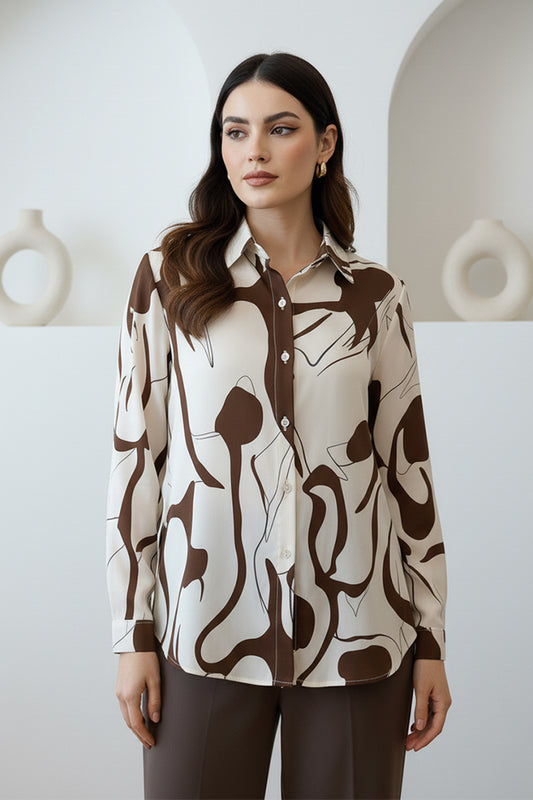 Artistic Flow Print Long Sleeve Shirt | Modern Women's Shirt