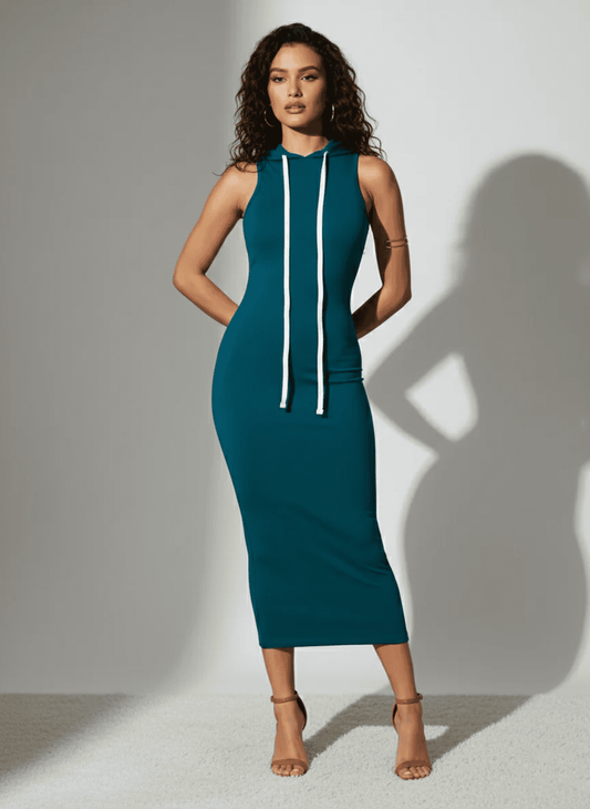 Women’s Sleeveless Bodycon Midi Dress – Hooded Casual Chic Partywear | Uvercee