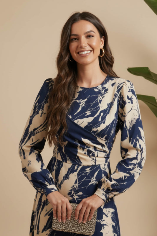 Abstract Print Mini Dress | Trendy Women's Long Sleeve Dress