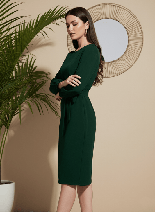 The Luxury Sheath: Emerald Green Long Sleeve Pencil Dress