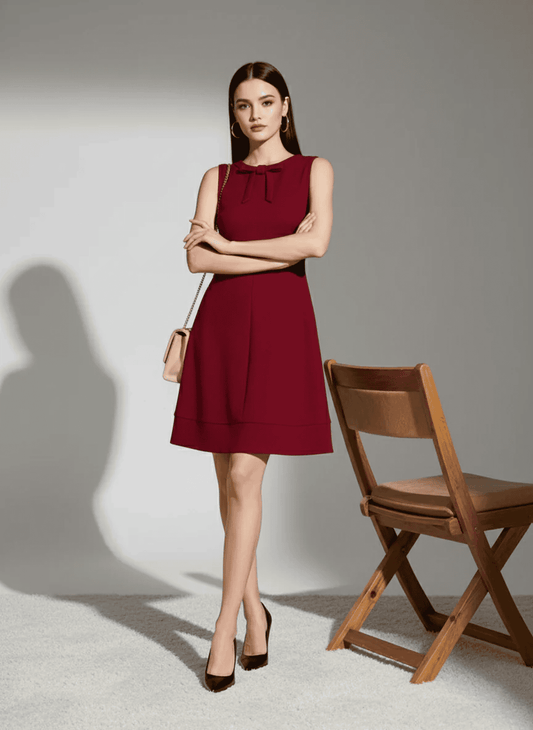 Trending Bow Neck A-Line Dress | Flattering Fit Formal Wear in Rich Maroon