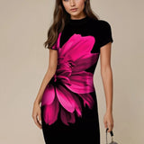 Floral Fusion Bodycon Dress - Sleek Black & Vivid Pink