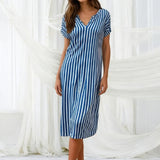 Summer Casual Striped Notched Neck Short Sleeve Dress