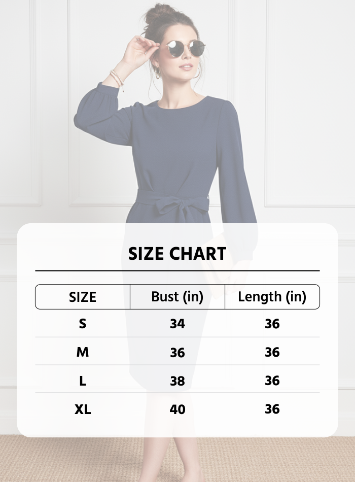 Achieve effortless sophistication with this stunning Navy Blue Sheath Dress. This essential piece of Women's Western Wear is the ultimate choice for the modern professional. Featuring elegant long sleeves, a classic round neck, and a complimentary tie-waist detail, this dress creates a refined, flattering slim-fit silhouette. The premium, structured fabric ensures a polished look that stays crisp from your first meeting to your last. Perfect for office wear, executive meetings, formal dinners, or any professional setting where confidence is key. Invest in this timeless dress and elevate your workwear collection instantly!